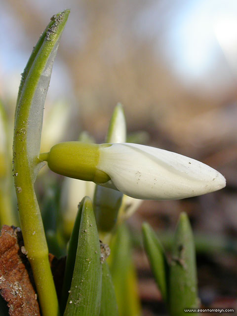 Be my valentine: a snowdrop prepares to bloom improbably early in the season, on February 14th.