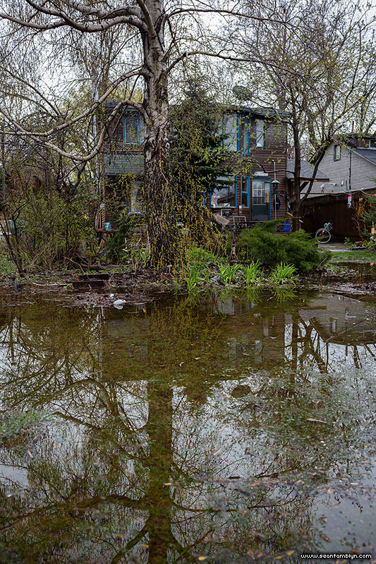 Flood waters encroach on the back of 21 Third St, just off of the Cove.