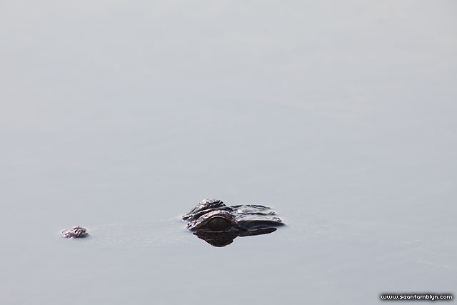 A partially submered American alligator waits for prey in the Archie Carr National Wildlife Refuge.
