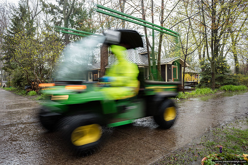 The Island is an absolute beehive of activity, as Parks workers, heavy lifters and smaller gators move sandbags to and fro.
