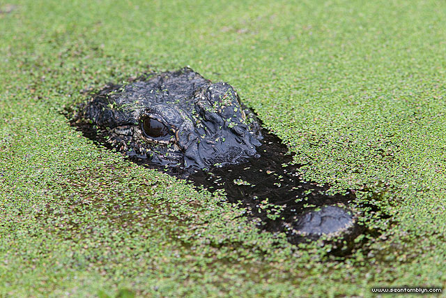 An alligator floats in the swamps of Kennedy Space Centre, a good reminder to be careful when setting up remote cameras.