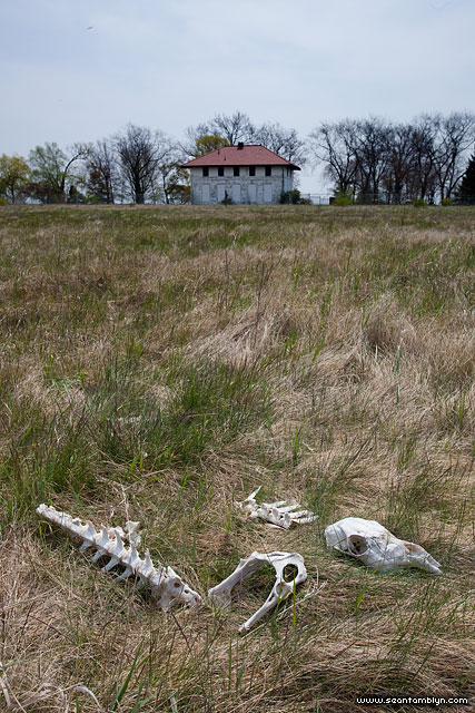 The unfortunate remains of an Island deer lie sun bleached in the field in front of the Island filtration plant. Discovered about two years ago by plant staff, the timing coincides with the deer’s disappearance.