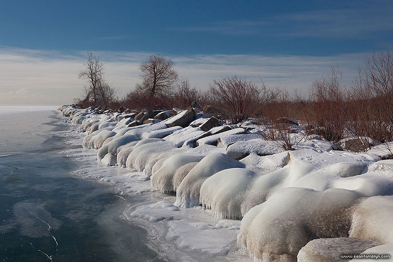 Heavy ice coats the rocks on the breakwater at the end of the Eastern gap.