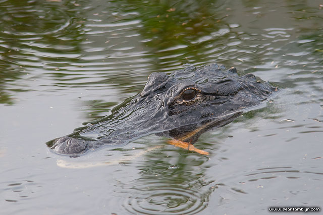 An American alligator, common at the Kennedy Space Centre, chews on a toothpick outside one of NASA’s administrative buildings.